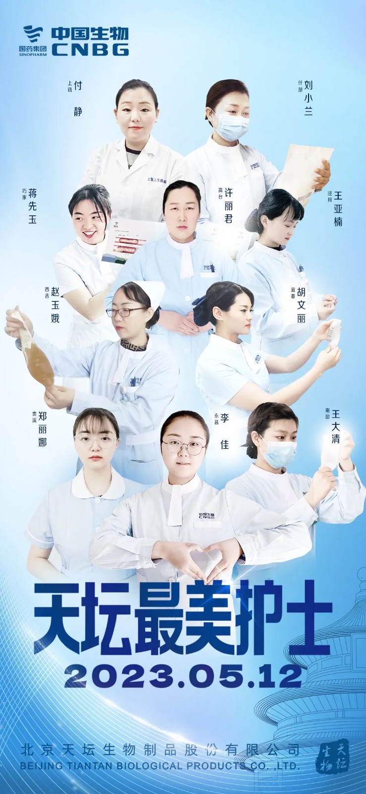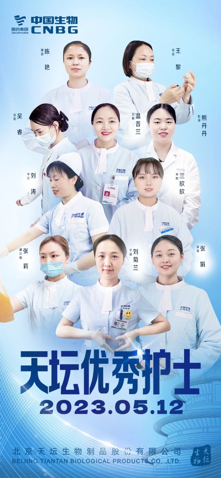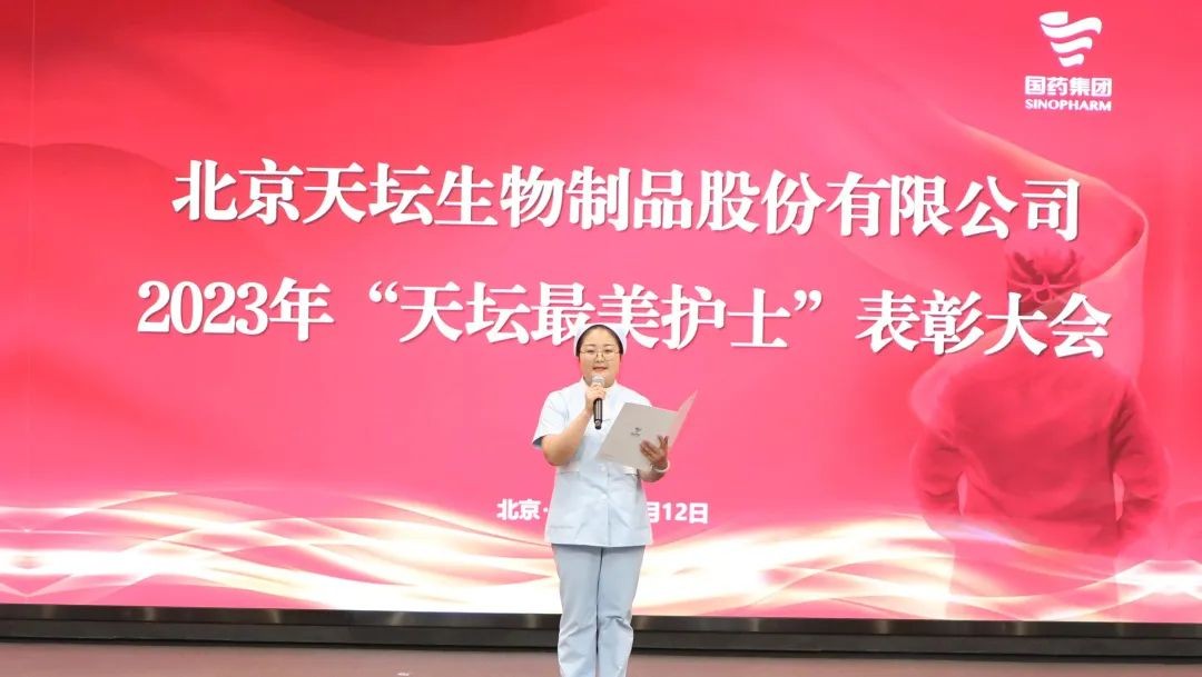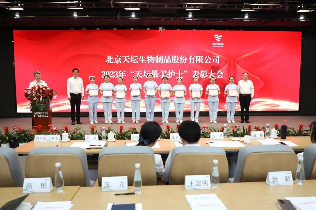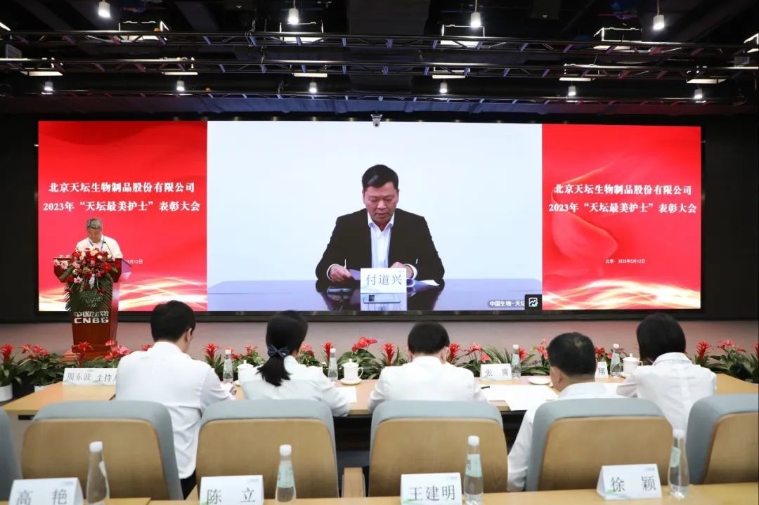 5月12日,2023年“天壇最美護士”表彰大會在北京舉行。中國生物黨委書記朱京津,天壇生物總經(jīng)理付道興,黨委書記劉亞娜,副總經(jīng)理何彥林,副總經(jīng)理兼財務(wù)總監(jiān)張翼,紀委書記高嵩出席會議。天壇生物常務(wù)副總經(jīng)理周東波主持會議。