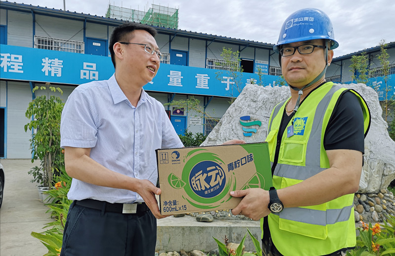隨后,杜濤主席為項目參建人員代表發(fā)放了慰問飲品,并為大家加油鼓勁。